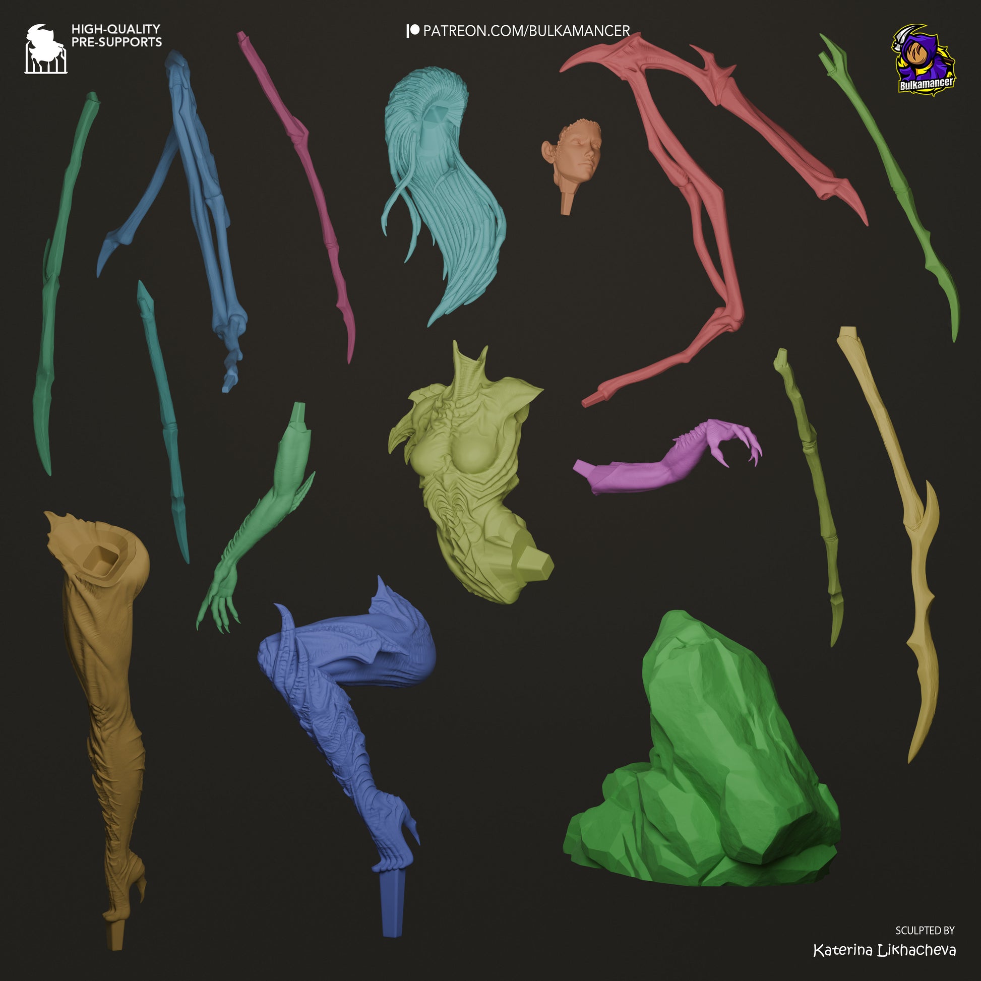Caution: Images are digital renders. Actual 3D prints may vary slightly and are full gray color.