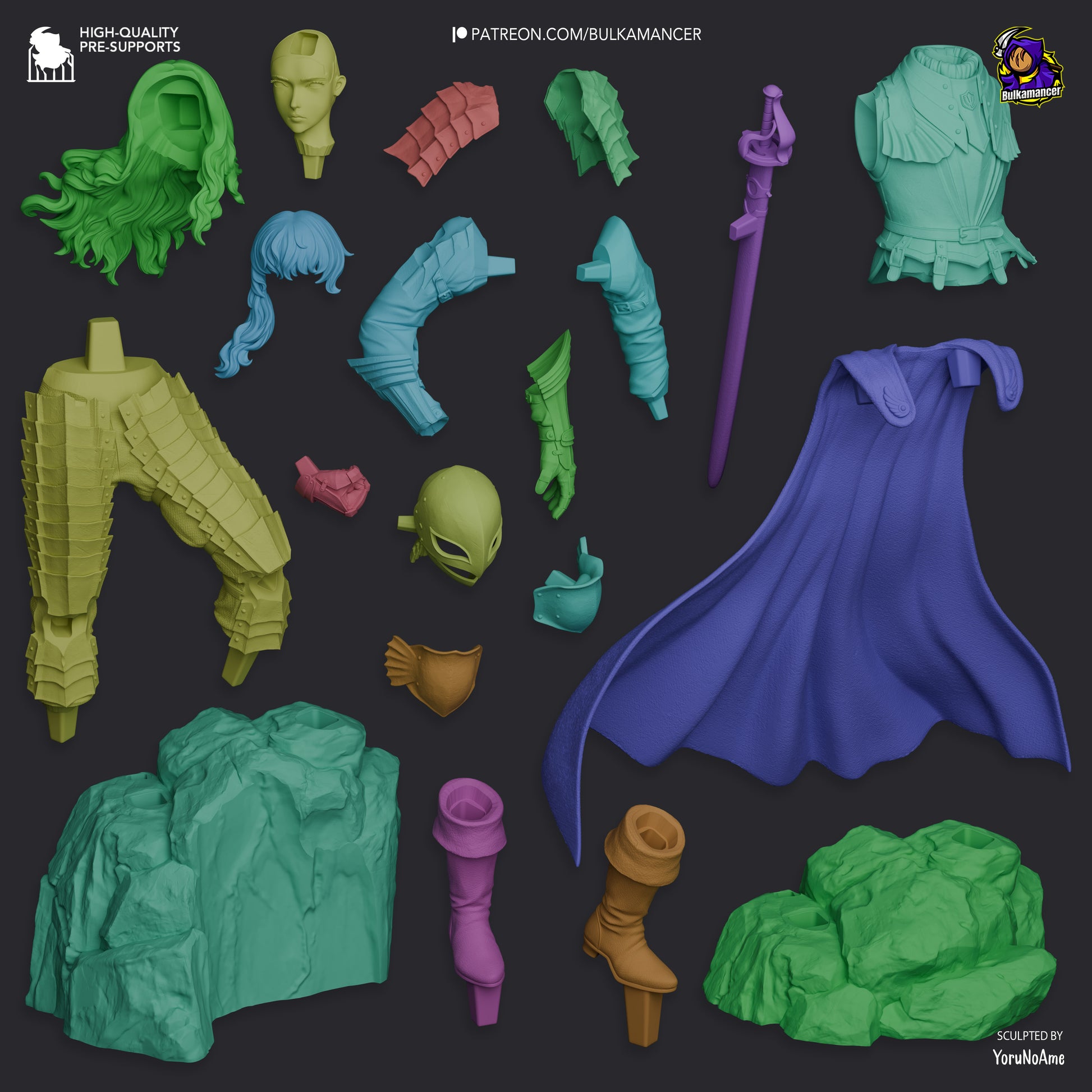 • Armură, păr și mantie sculptate complex pentru detalii realiste